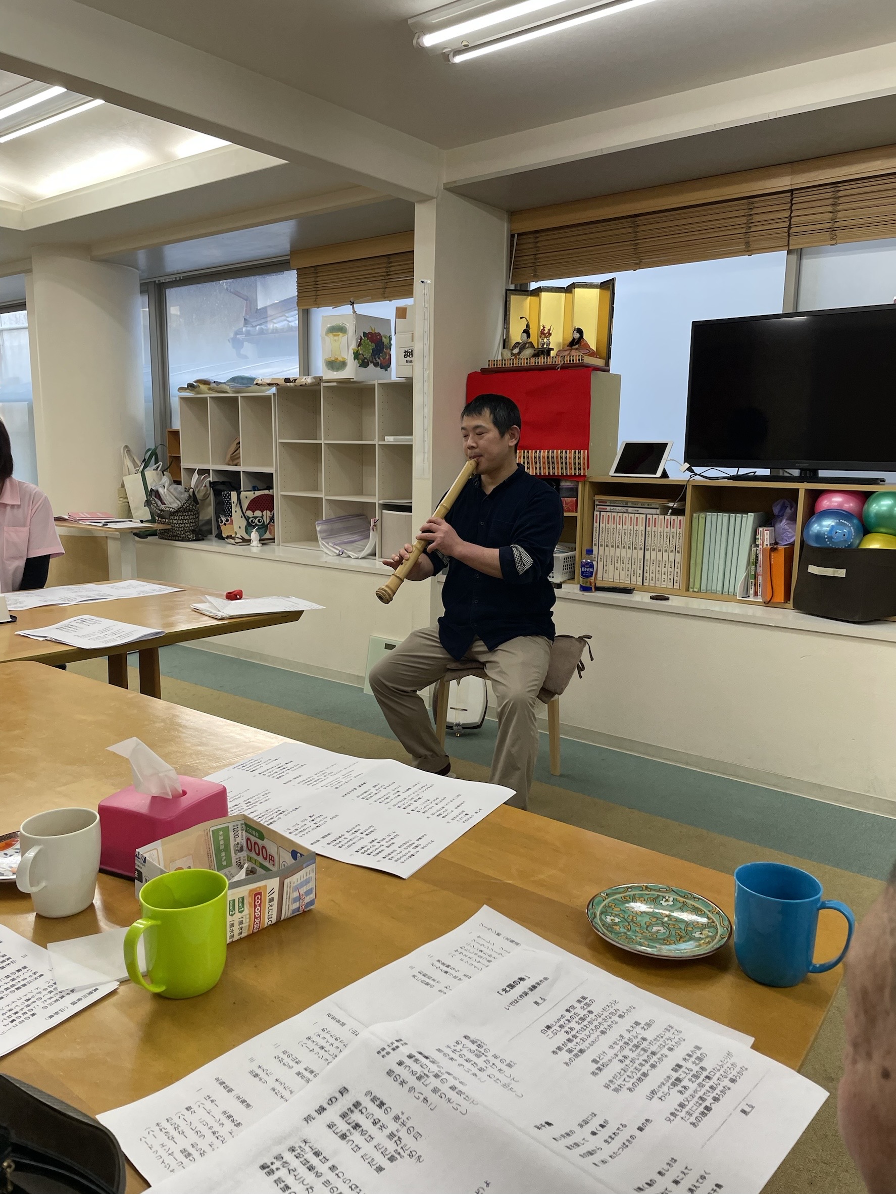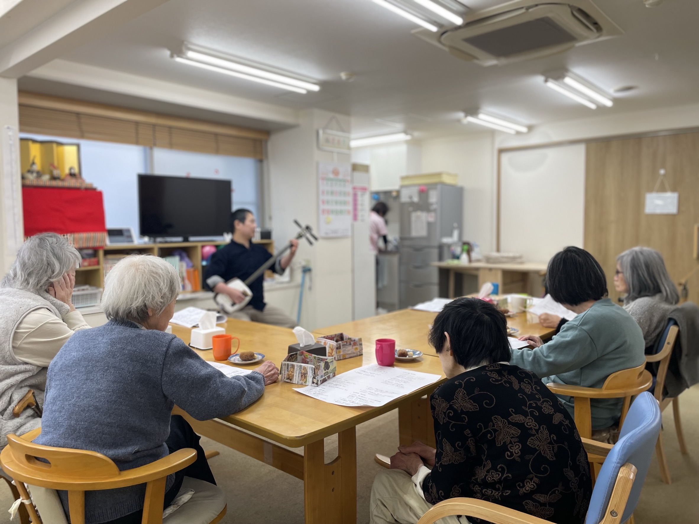 陽だまりデイサービスにて2月23日に三味線と尺八の演奏会がありました。