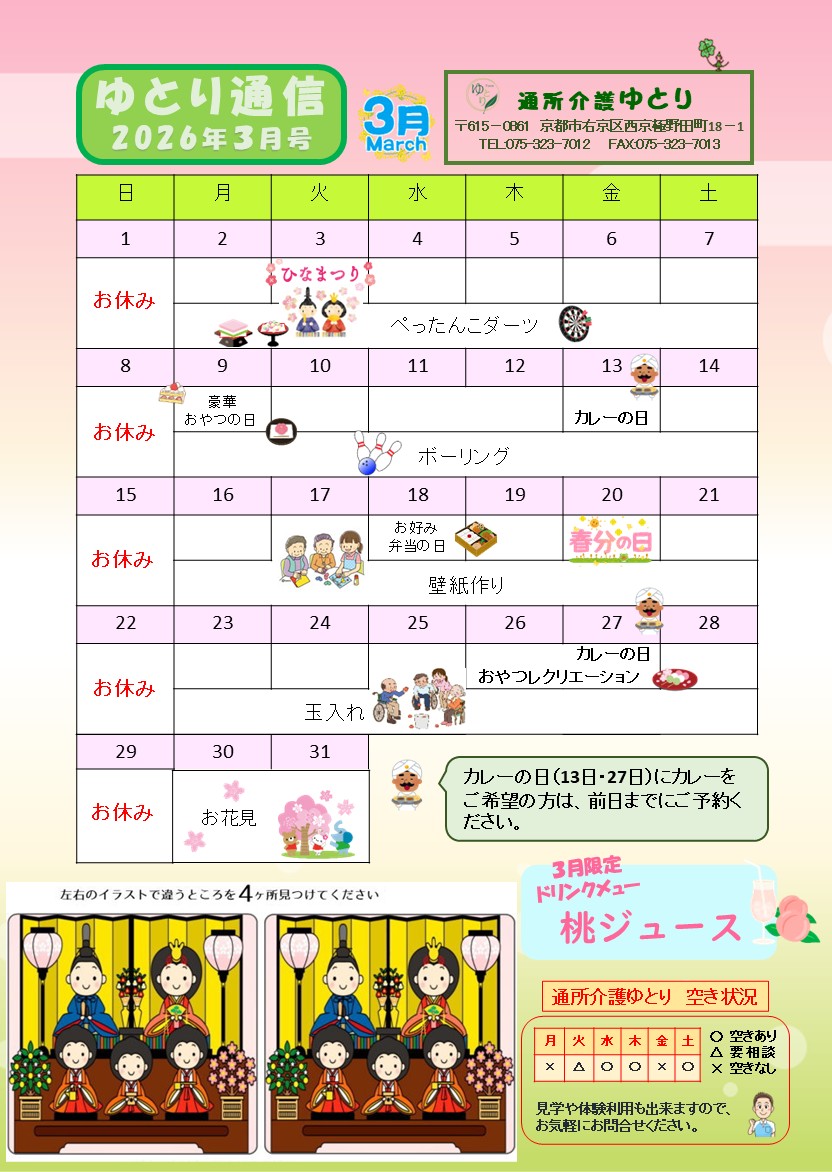 通所介護ゆとり ゆとり通信3月号